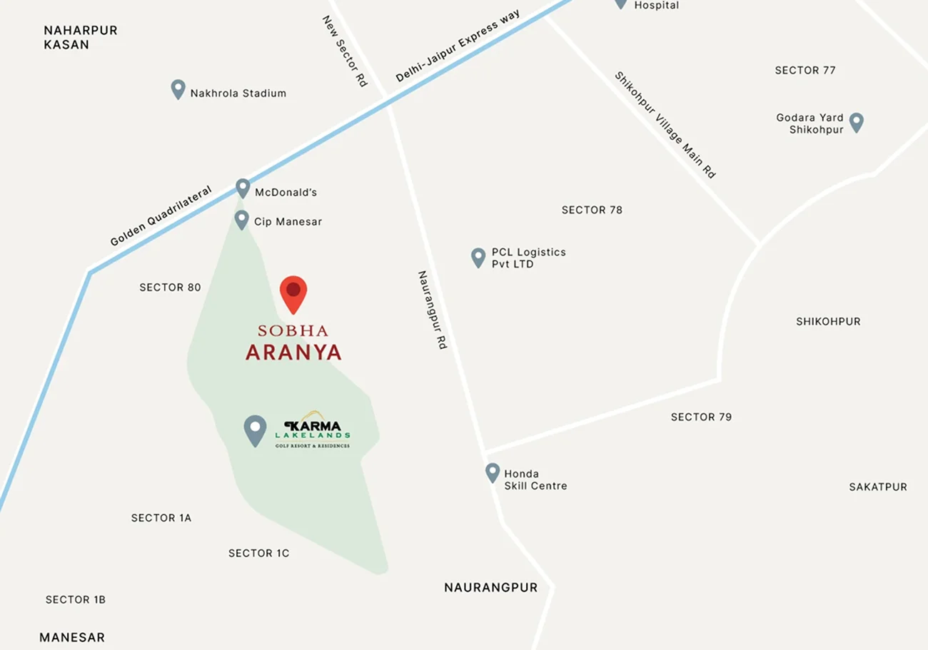 Sobha Aranya Gurgaon stands out with its landscaped green areas, modern facilities, and a community that planned for a better way of living. Its prime position along NH 8 ensures that Sobha Aranya Sector 80 Gurgaon provides smooth travel to Delhi, Manesar, and key parts of Gurgaon. Whether you are buying to live or invest, Sobha Sector 80 delivers value that lasts.